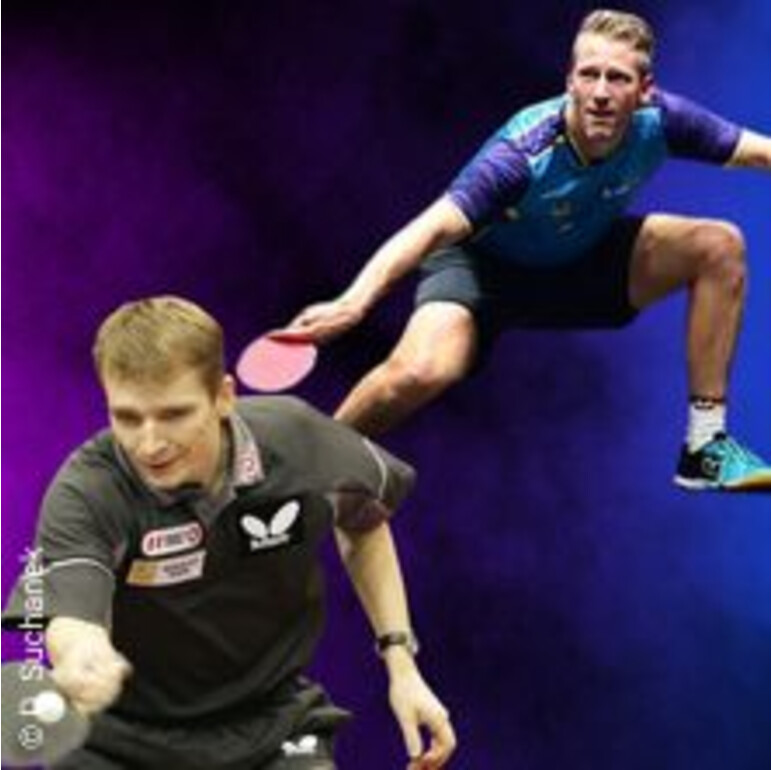 Werner Schlager im Duell gegen Ruwen Filus: erleben Sie packende Ballwechsel und regionale Talente in einer virtuosen Tischtennisshow.