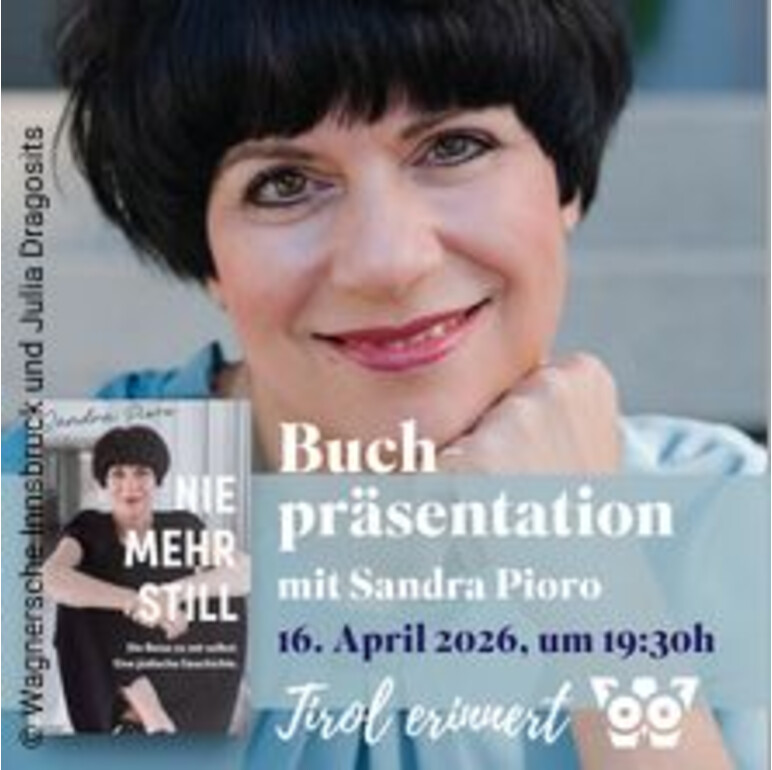 Wir laden Sie sehr herzlich ein zur Buchpräsentation von „Nie mehr still“ mit Autorin Sandra Pioro.