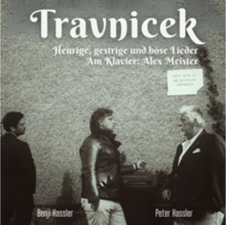 Peter Hassler, Benji Hassler und Alex Meister am Klavier bringen mit "Travnicek" das goldene Wiener Herz von anno dazumal auf die Bühne. Man hört das Beste aus der Zusammenarbeit von Andrè Heller und Helmut Qualtinger (Heurige und gestrige Lieder - Geschichten aus dem Wienerwald) sowie die großen Hits von Gerhard Bronner und Helmut Qualtinger. Travniceks Dialoge dürfen in diesem Programm natürlich auch nicht fehlen.