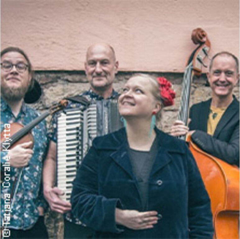 Uusikuu (Neumond) sind im Jahr 2006 mit dem ehrgeizigen Ziel angetreten, den traditionellen Finntango mit neuem Leben zu füllen. Mit der ach so typischen melancholischen Tangostimmung hat das putzmuntere Weltmusikquintett rein gar nichts am Hut (oder an der Strickmütze). Das Kleinorchester, das seinen Stil als „Vintage Sounds of Finland“ bezeichnet, verbeugt sich auf seinen Alben bewundernd vor der traditionellen finnischen Unterhaltungsmusik der 1930er bis 1960er Jahre. Auf der Stelle treten wollen die Fünf nicht, sondern wagen sich kurz sogar in die famosen 70er und 80er Jahre vor. Und da Uusikuu riesengroße Fans des Eurovision Song Contest sind, dürfen Verweise auf den legendären Musikwettbewerb nicht fehlen.