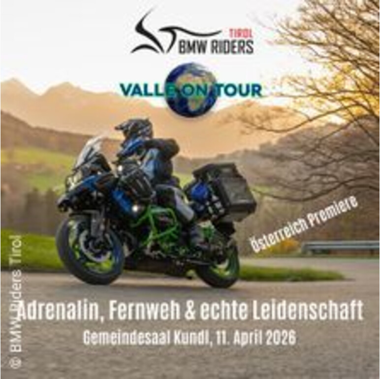 Das ist das Motto, wenn die BMW Riders Tirol zusammen mit Valle on Tour die Bühne betreten. Ein Abend für Motorradbegeisterte und Reiselustige mit beeindruckenden Bildern, packenden Geschichten und persönlichen Eindrücken von Touren bis in die entlegensten Gegenden.