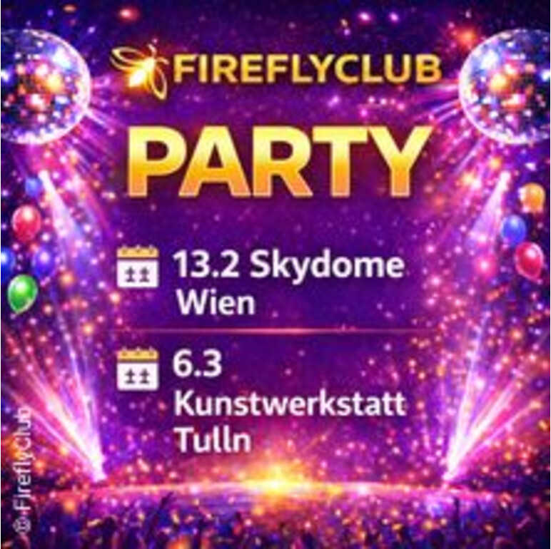 | Sa | 06.03.2027 | 15:00 Uhr | Kunstwerkstatt Tulln Albrechtsg. 18 - Zugang über Donaulände 3430 TULLN Österreich zum Routenplaner | FireflyClub Party 2027 Tulln |