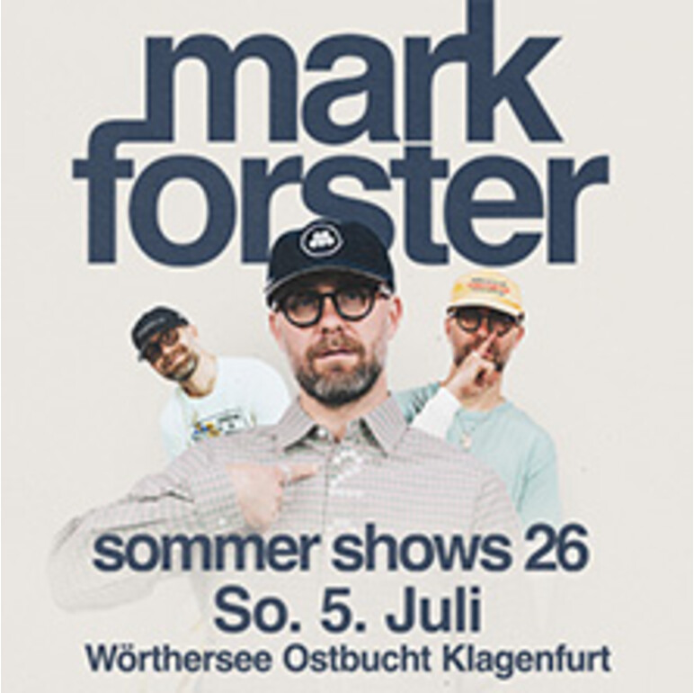 Er zählt zu den erfolgreichsten und beliebtesten Popkünstlern Deutschlands: Mark Forster. Dank seiner unverwechselbaren Stimme, seinen eingängigen Melodien und gefühlvollen, tiefgründigen Texten hat er die deutschsprachige Musiklandschaft nachhaltig geprägt. Am 5. Juli 2026 kommt der gebürtige Pfälzer zur Freude seiner österreichischen Fans nach Klagenfurt und wird im Rahmen der Open Air-Shows 2026 ein gigantisches Konzertereignis abliefern.