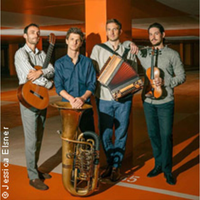 Das Leichte ist am schwersten – Geige, Steirische Harmonika, Gitarre und Tuba – vier virtuose Musiker weben ein dynamisches, kammermusikalisches Geflecht, das in einer Eleganz und Leichtigkeit aufblüht, die man im Zusammenhang mit Volksmusik so nicht erwartet hätte.